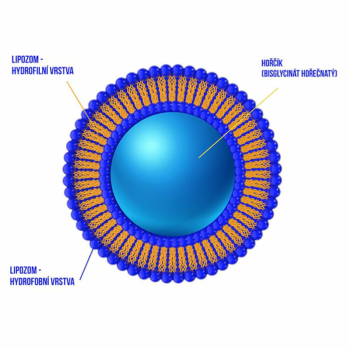 LIPOZOMÁLNY TRANSPORTNÝ SYSTÉM CHELÁTOVÁ FORMA BIOAKTÍVNYCH MINERÁLOV Liposomal Magnesium obsahuje horčík v chelátovej forme bisglycinátu horečnatého, taurín, zinok v chelátovej forme, selén v chelátovej forme a chróm v chelátovej forme. Bisglycinát horečnatý je chelátová forma horčíka s veľmi dobrou vstrebateľnosťou a využiteľnosťou pre telo. V kombinácii s lipozomálnou technológiou potom Liposomal Magnesium predstavuje špičku z hľadiska efektívnosti suplementácie. Z výskumov vyplýva, že tradičné horčíkové suplementy nemusia byť telom dostatočne využité. Ich vstrebateľnosť znižuje rýchle odbúranie v organizme, nevhodná forma obsiahnutého horčíka či iné konzumované potraviny. Lipozomálna forma oproti tomu ponúka vynikajúcu vstrebateľnosť. Forma lipozómov navyše výrazne znižuje riziko gastrointestinálnych problémov spojených s tradičným suplementáciou, čo je bonus pre všetky vekové kategórie! Náš lipozomálny transportný systém ponúka vysoko vstrebateľnú receptúru bez obsahu umelých sladidiel, umelých farbív alebo geneticky modifikovaných zložiek. Profesor Dr. Dr. Borut Štrukelj, M.Sc. (Department for Pharmaceutical Biology at Faculty of Pharmacy, Ljubljana) potvrdzuje, že lipozomálna metóda je pokročilá farmaceutická technológia, ktorá umožňuje, aby bola účinná látka lepšie chránená v zažívacom trakte, vstrebávala sa lepšie a rýchlejšie, a tak dosiahla vysoké koncentrácie v krvi. V ČOM JE ROZDIEL? ORIGINÁLNE TEKUTÉ LIPOSÓMY [1, 2, 3]