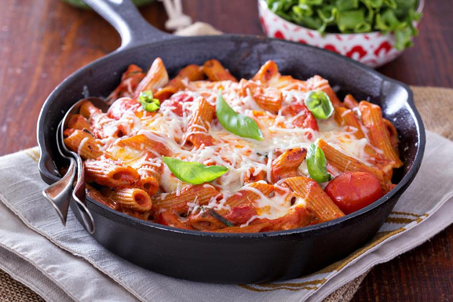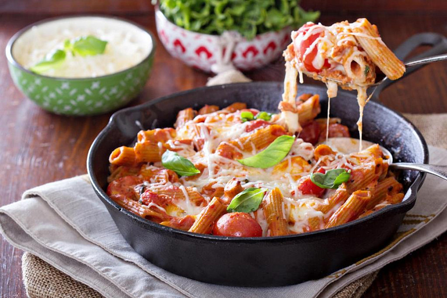 Zapečená zmes s cícerom, cestovinami a bujónkou Orient