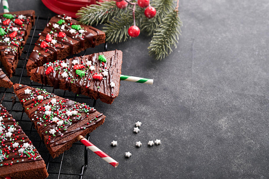 Pečieme cca 25 minút na 180 °C. Necháme úplne vychladnúť. Potom môžeme rozkrájať na stromčeky a ozdobiť - orieškovým maslom, čokoládou, sušeným ovocím a orechmi.