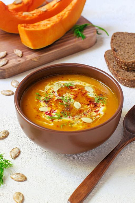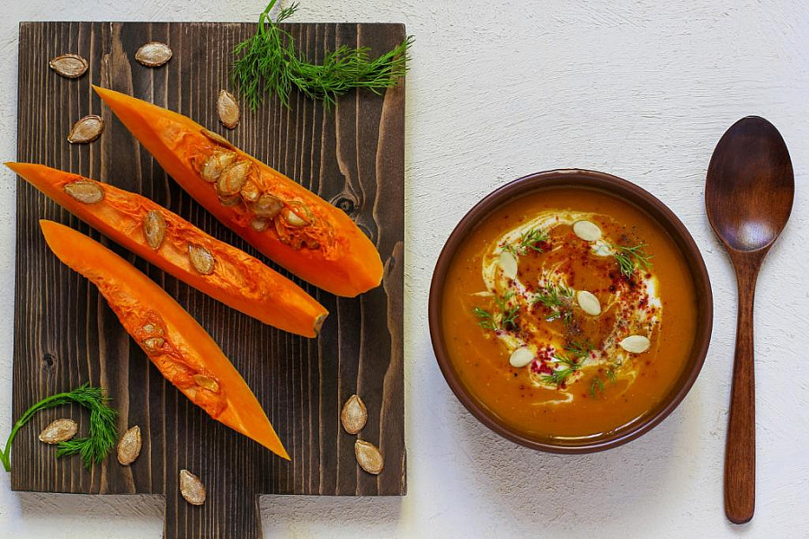 Uvarenú polievku rozmixujeme dohladka, prípadne doladíme konzistenciu podľa chuti. Podávame ju s pečenou cícerom a mrkvou, posypanú semienkami alebo orieškami. Skvele chutí aj s čerstvým pečivom.