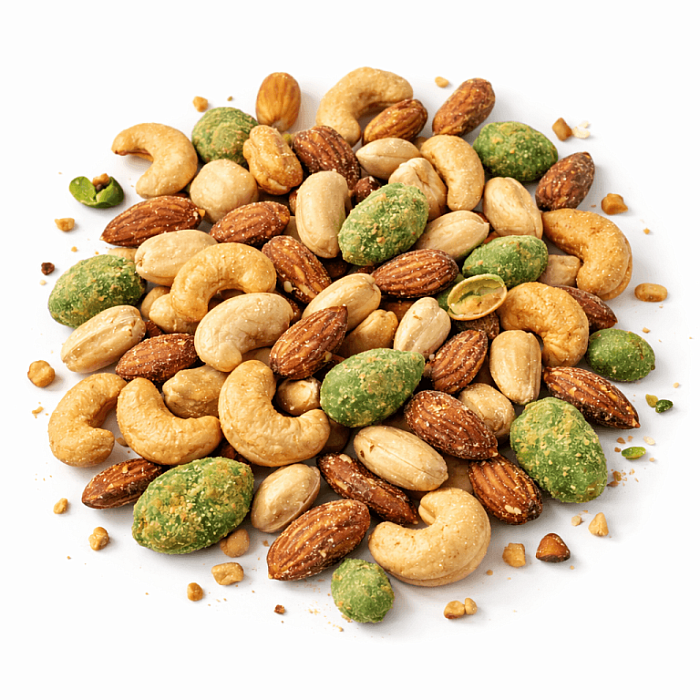 Poriadna porcia chrumkania pre všetkých milovníkov slaných snackov. Tento mix kombinuje pražené mandle, kešu aj výrazné wasabi arašidy , takže v každom súste nájdeš inú chuť – od jemne slanej až po ľahko pikantnú.