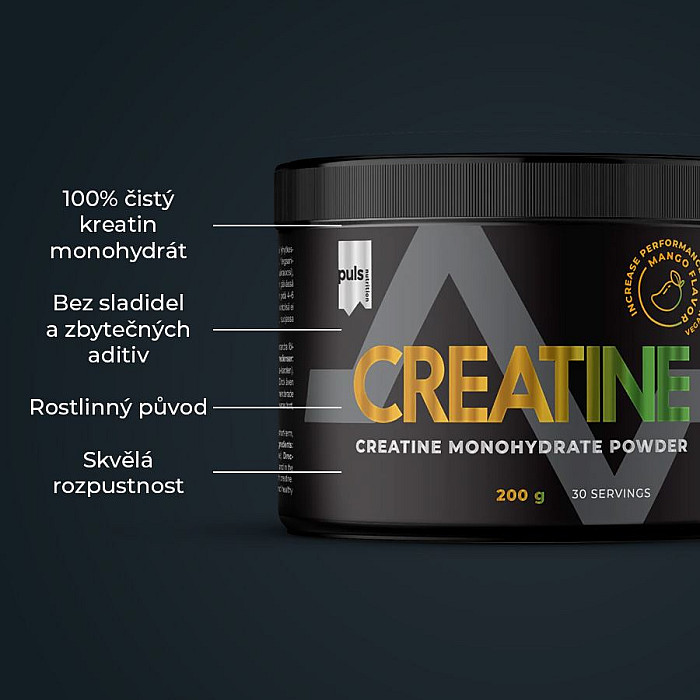 Nezastaviteľný progres a osviežujúca chuť manga. Maximalizujte svoju silu a výkon s naším ochuteným kreatínom PULS Creatine Pear. Tento vedecky overený doplnok stravy pomáha zvyšovať tréningovú intenzitu a odomykať váš skutočný potenciál. Každá porcia prémiovej kvality dodá 5 g kreatín monohydrátu, teraz v osviežujúcej hruškovej príchuti, ktorá sa ľahko pije a skvele chutí. Pravidelné užívanie kreatínu podporuje rast čistej svalovej hmoty, zlepšuje regeneráciu medzi sériami a zvyšuje celkovú tréningovú kapacitu. Vďaka tomu môžete trénovať tvrdšie, dlhšie a dosahovať rýchlejšie výsledky. Kreatín preukázateľne zlepšuje fyzickú výkonnosť pri opakovaných krátkodobých, vysoko intenzívnych výkonoch. Pozitívny účinok je dosiahnutý už pri dennej dávke 3 g. Kreatín sa prirodzene vyskytuje v ľudskom tele a slúži ako rýchly zdroj energie pri svalovej kontrakcii. Jeho pravidelná suplementácia v cykloch bola opakovane potvrdená ako účinný spôsob, ako zvýšiť tréningový výkon. Pre maximálny rozvoj sily a výkonu odporúčame kombinovať kreatín s Whey Proteinom alebo Vegan Proteinom, ktoré podporia komplexný svalový rast a regeneráciu po každom tréningu. Žiadne kompromisy z hľadiska jedinečnej chuti a zloženia. Fínska značka PULS NUTRITION patrí vo všetkých ohľadoch k absolútnej špičke športovej a doplnkovej výživy.