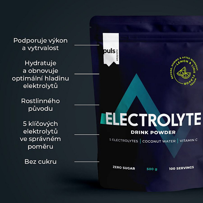 SEVERSKÁ KVALITA BEZ KOMPROMISU Optimalizujte hydratáciu a výkon. PULS Electrolyte prášok je ideálnym riešením na udržanie správnej hydratácie. Táto formula bez obsahu cukru poskytuje dokonale vyváženú zmes piatich esenciálnych elektrolytov – horčíka, vápnika, draslíka, chloridu a sodíka – teda kľúčových minerálov potrebných na udržanie optimálnej rovnováhy tekutín a podporu svalovej funkcie pri intenzívnej aktivite. Zmiešajte s vodou a vychutnajte si osviežujúcu citrónovo-limetkovú chuť. Je možné užívať počas alebo po tréningu, pri fyzicky náročnom pracovnom dni, po saunovaní alebo v horúcich dňoch. Obohatené o kokosovú vodu CocoMineral® a vitamín C. Minerály z kokosovej vody podporujú efektívnu hydratáciu, vitamín C prispieva k normálnemu energetickému metabolizmu a pomáha udržiavať správnu funkciu imunitného systému počas aj po náročnom fyzickom výkone. Vegánske zloženie sa ľahko hodí do akéhokoľvek stravovacieho režimu a poskytuje dôležitú podporu hydratácie bez zbytočných kalórií či prísad. Pre komplexnú výživu pri tréningu zvážte kombináciu s aminokyselinami EAA alebo BCAA, ktoré podporujú svalovú funkciu a regeneráciu pri zachovaní optimálnej elektrolytovej rovnováhy. Žiadne kompromisy z hľadiska jedinečnej chuti a zloženia. Fínska značka PULS NUTRITION patrí vo všetkých ohľadoch k absolútnej špičke športovej a doplnkovej výživy.